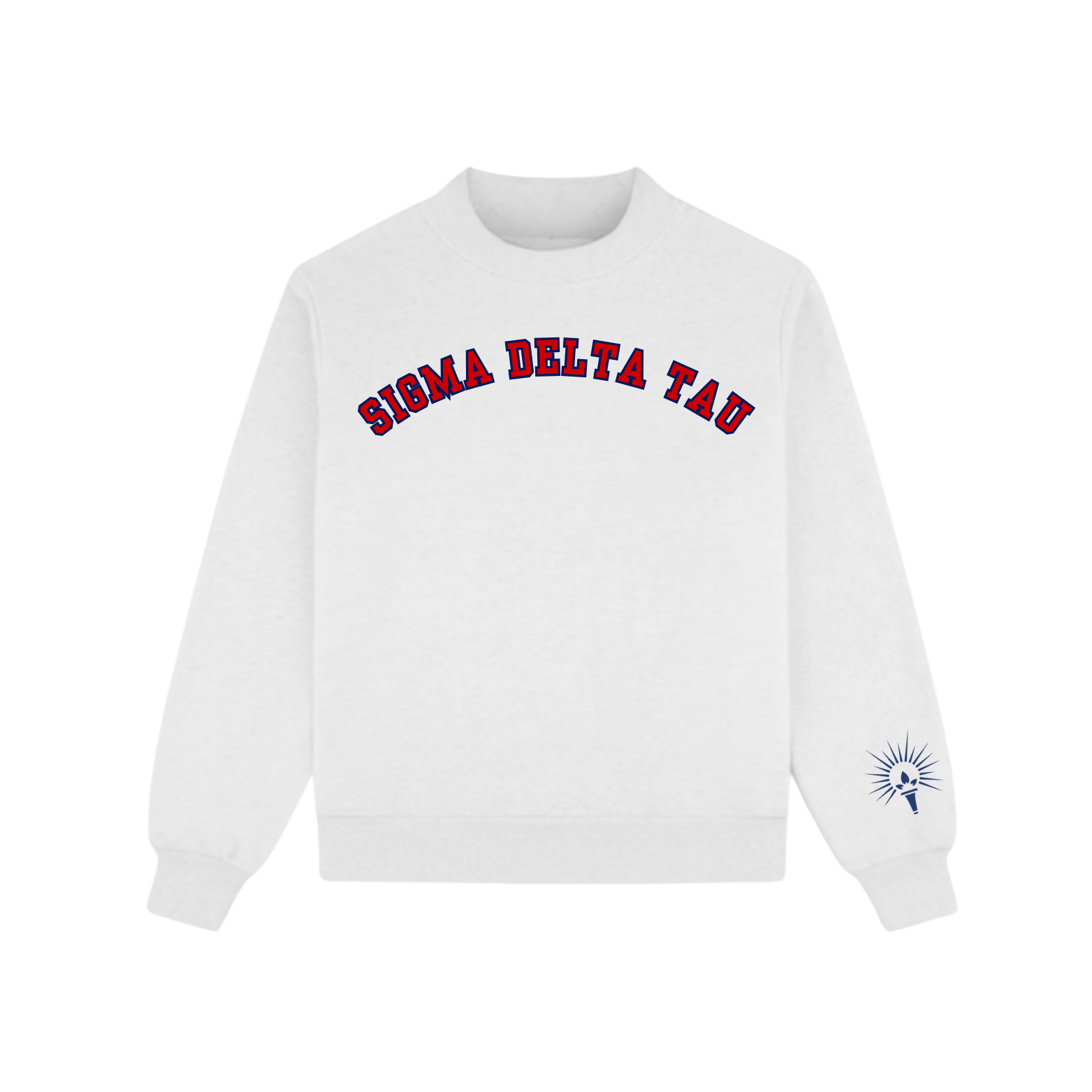 This Mockneck features "Sigma Delta Tau" with an embroidered sleeve.