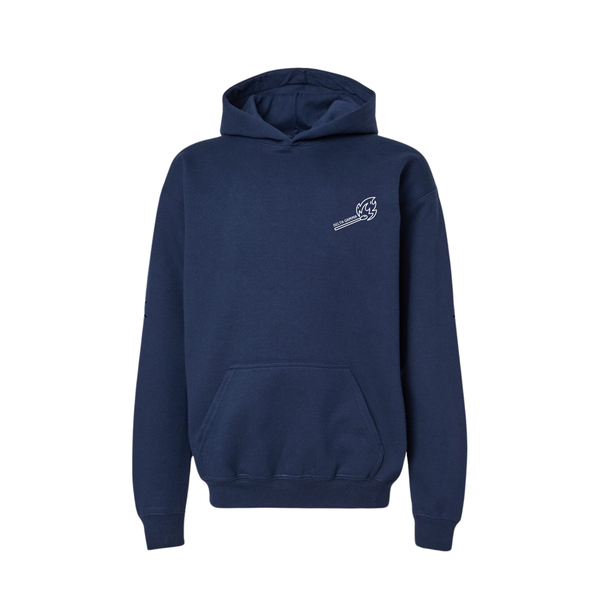 The design on the front of the hoddie is applied with fine-thread stitch embroidery and the design on the back is printed with a high quality finish.