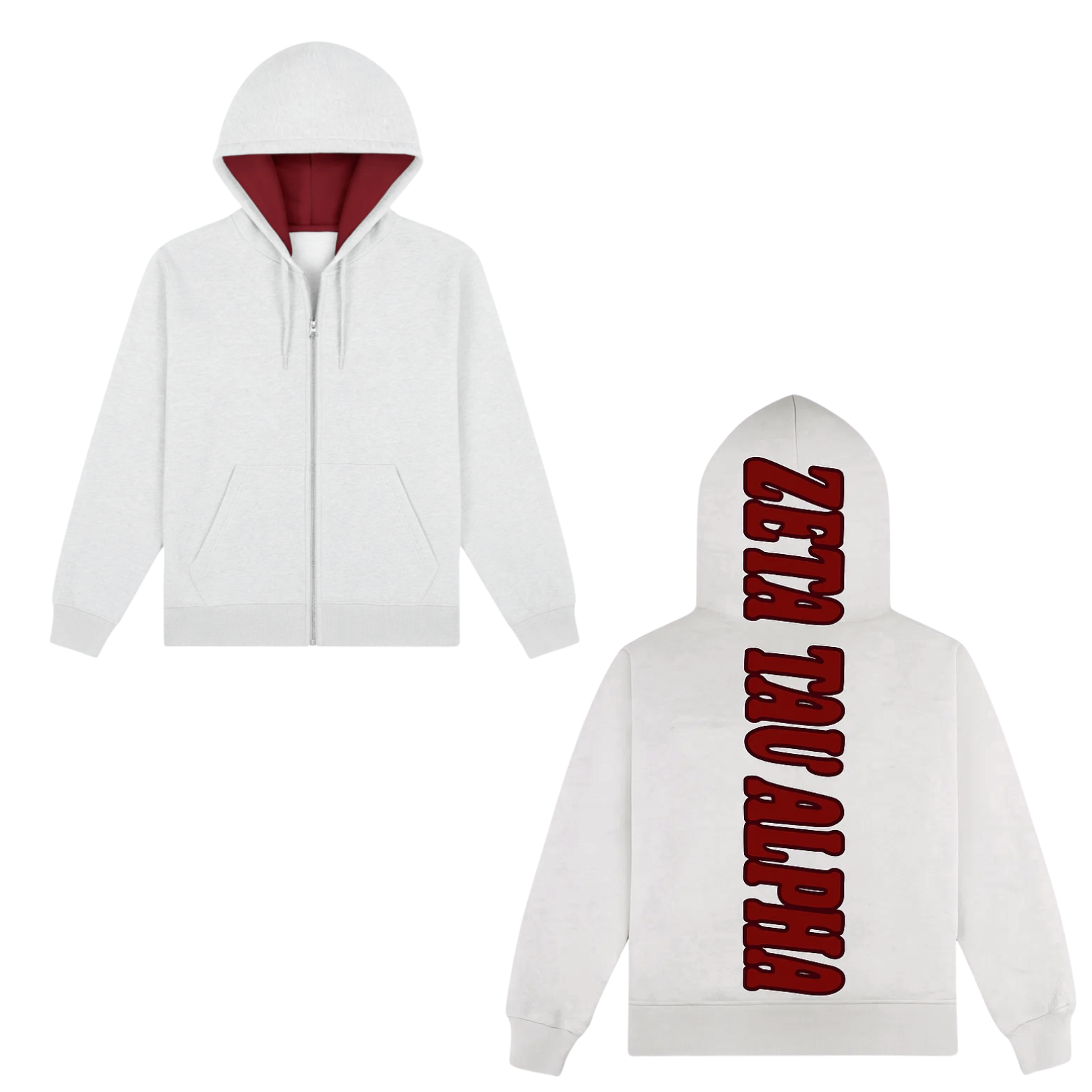 custom cut zip hoodie with deep red hood liner