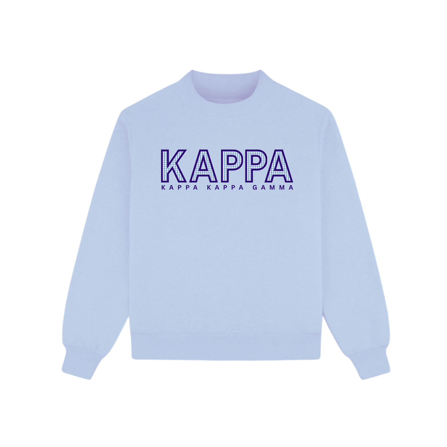 Stay cozy and stylish in this classic mockneck with a patched KAPPA design with embroidered “Kappa Kappa Gamma” lettering below.