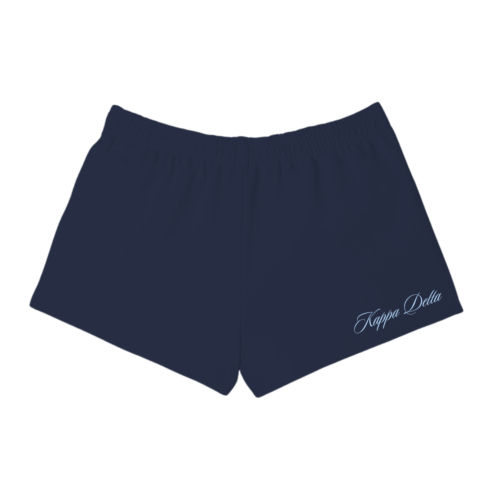 The design on the sweatshorts is applied with fine-thread stitch embroidery.