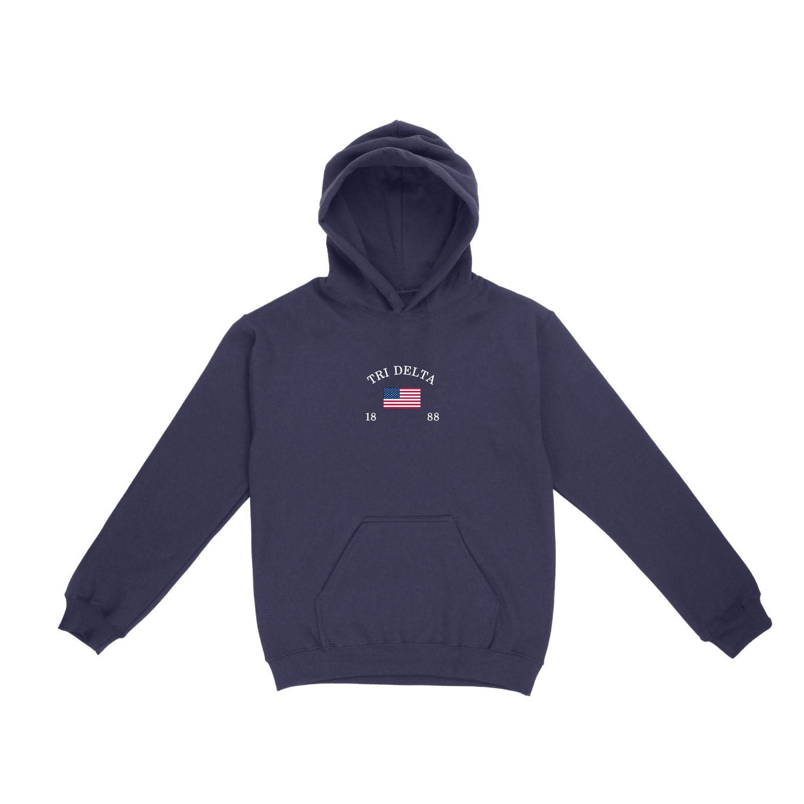 The design on the hoodie is applied with fine-thread stitch embroidery.