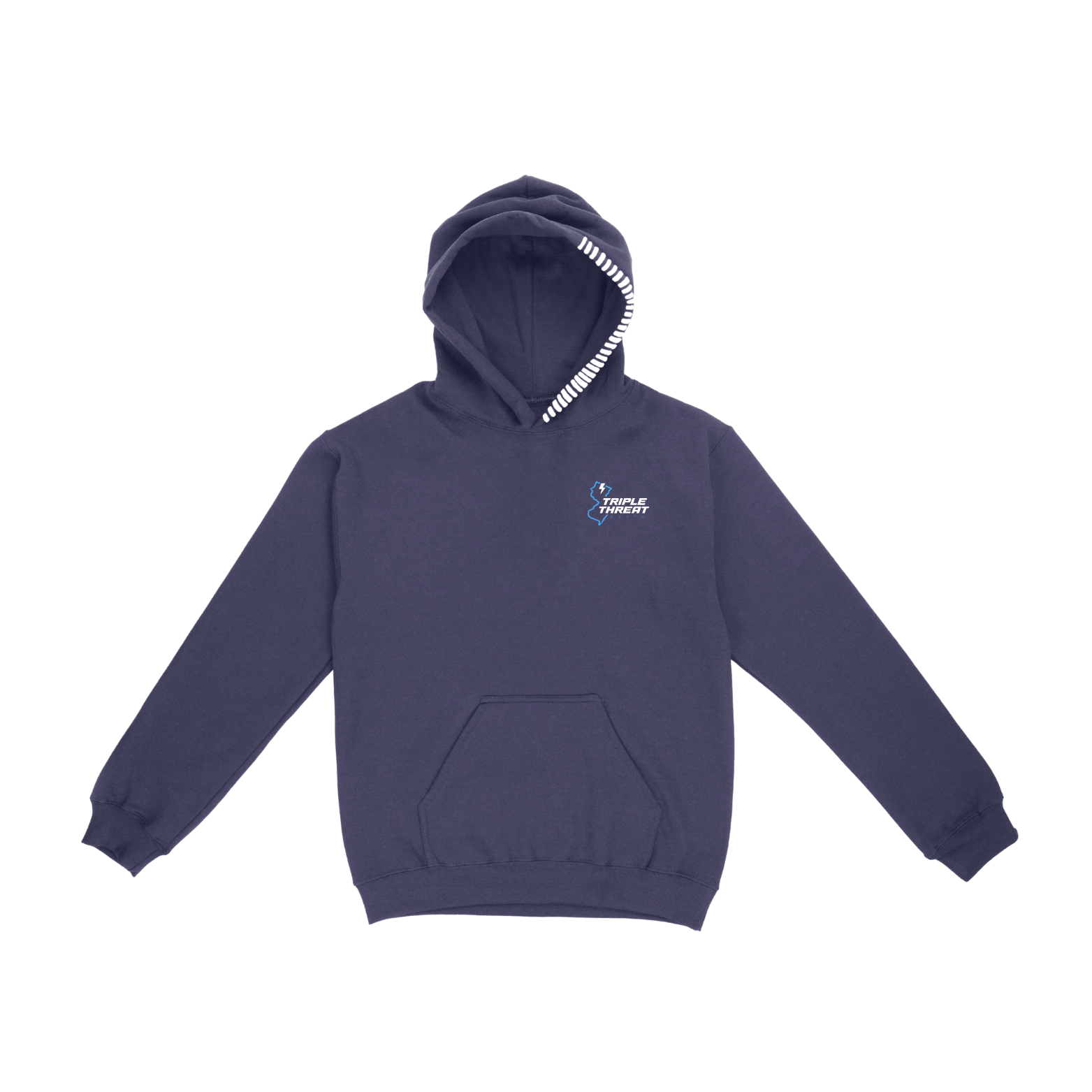 This Hoodie design features a "Triple Threat Elite" text applied with fine-thread stitch embroidery, as well as an embroidered stitched hood.